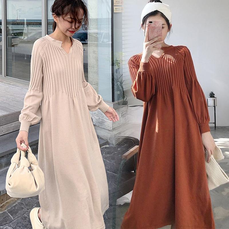 ニットワンピース きれいめ レディース パフ袖 Vネック セーターワンピ ロング 着回し 春秋冬 人気 学生ゆったり カットソー カジュアル オフィス 052 C1 Zhfs Zh 9001 Kayiyasu レディース店 通販 Yahoo ショッピング
